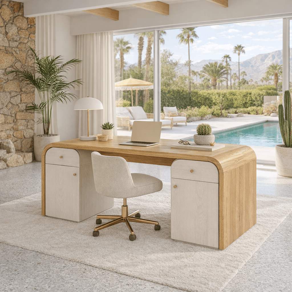 Redefine your professional environment with the Sidecar Desk, an executive-level piece that harmonizes fluid architectural lines with high-performance storage. Named for the classic balanced cocktail, this desk is designed for those who value a workspace that feels as much like a piece of curated art as it does a functional hub for productivity. It is a cornerstone of "quiet luxury" for the modern home office.