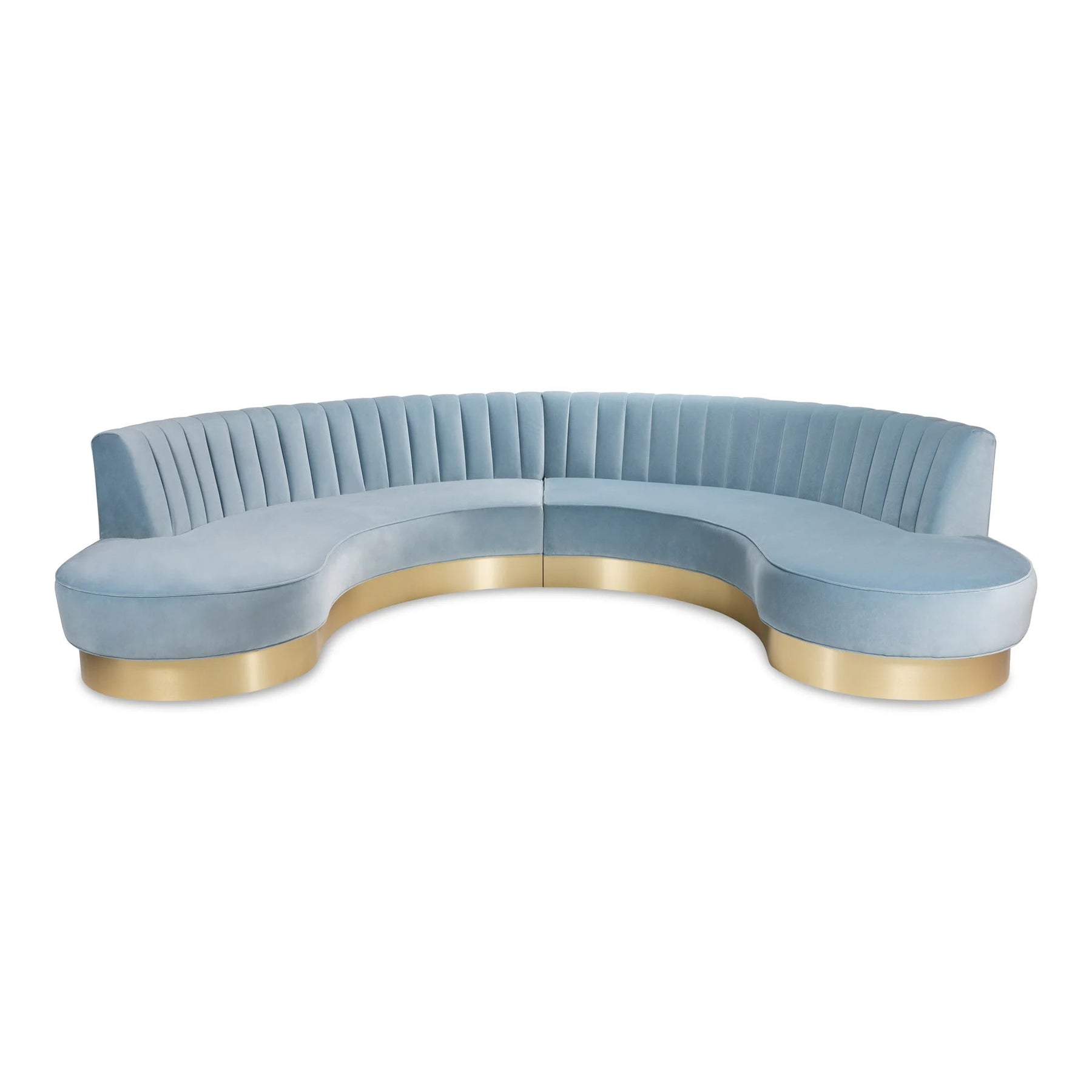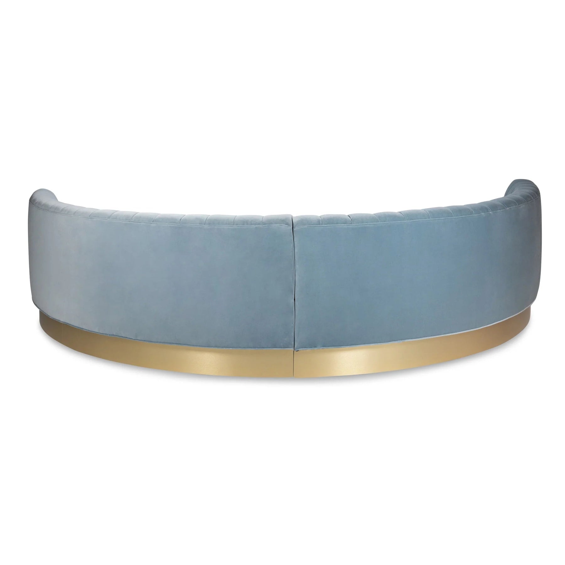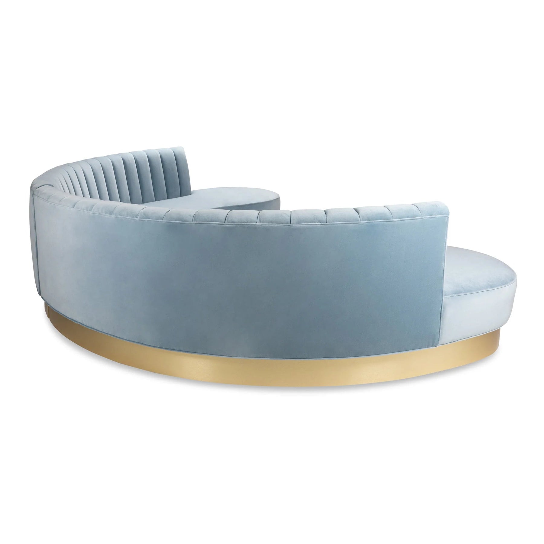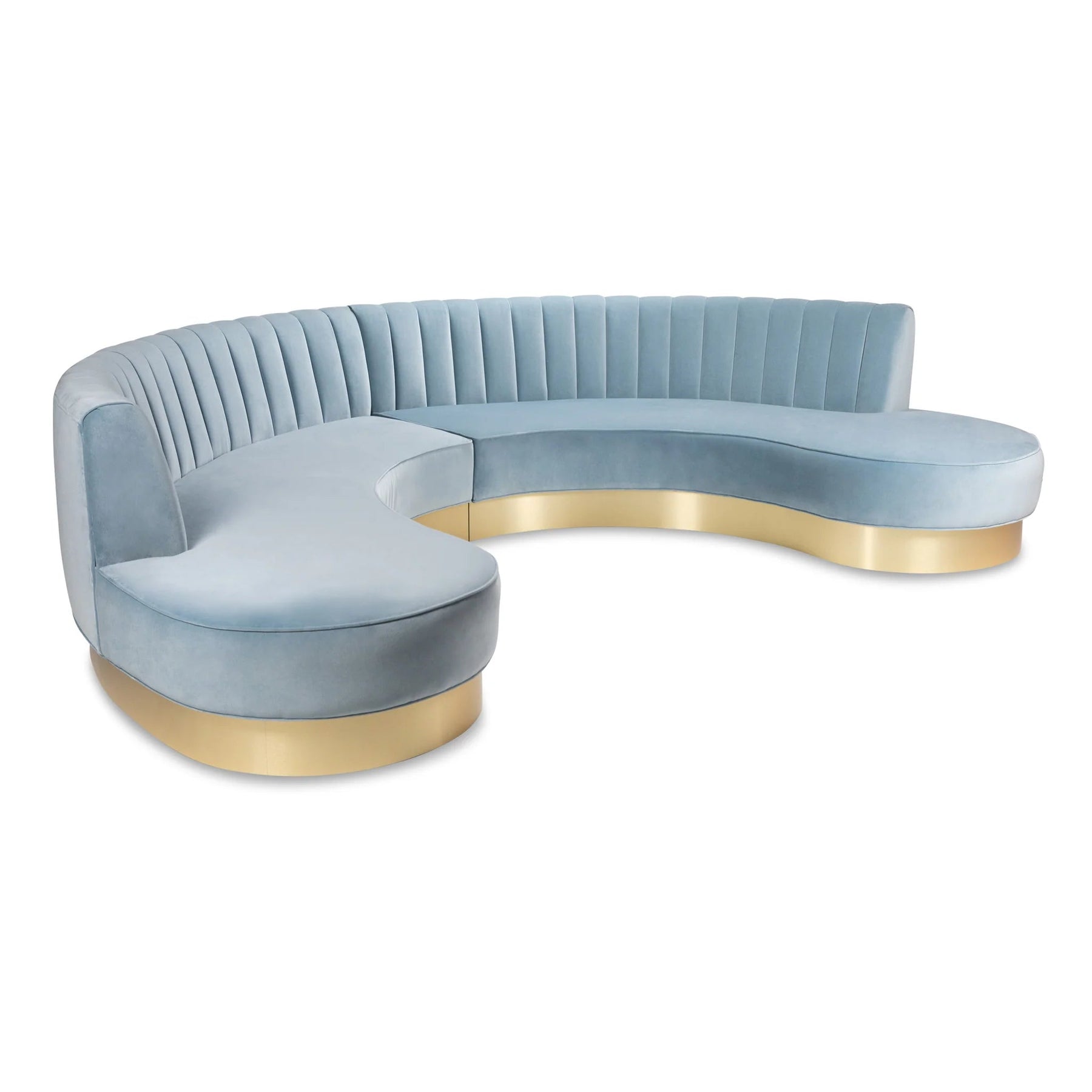 Upholstered in sumptuous ice blue velvet, the Bombay Sectional offers a soft, luminous finish that enhances its sculptural form while adding a cool, refined elegance. The plush velvet upholstery elevates the tactile experience, creating a look that feels both indulgent and inviting.