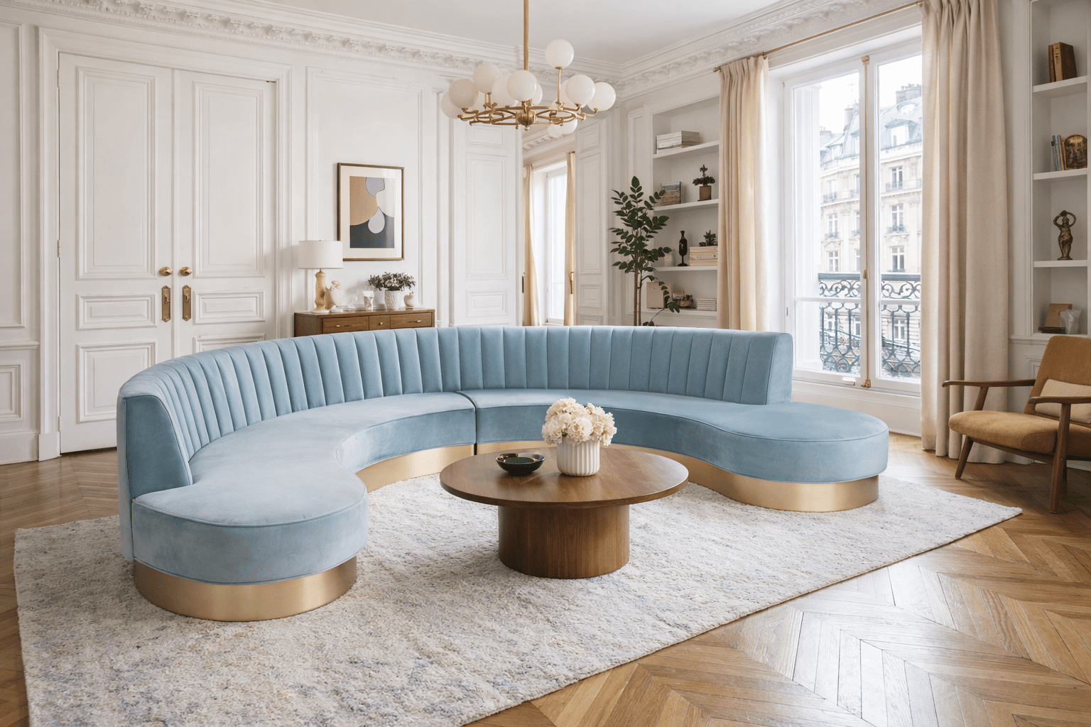 Sculptural, sophisticated, and undeniably luxurious, the Bombay Sectional is designed to be the centerpiece of elevated interiors. Featuring a sweeping curved silhouette and elegant channel-tufted detailing, this sectional brings a refined sense of movement and glamour to modern living spaces, luxury lounges, and design-forward homes.