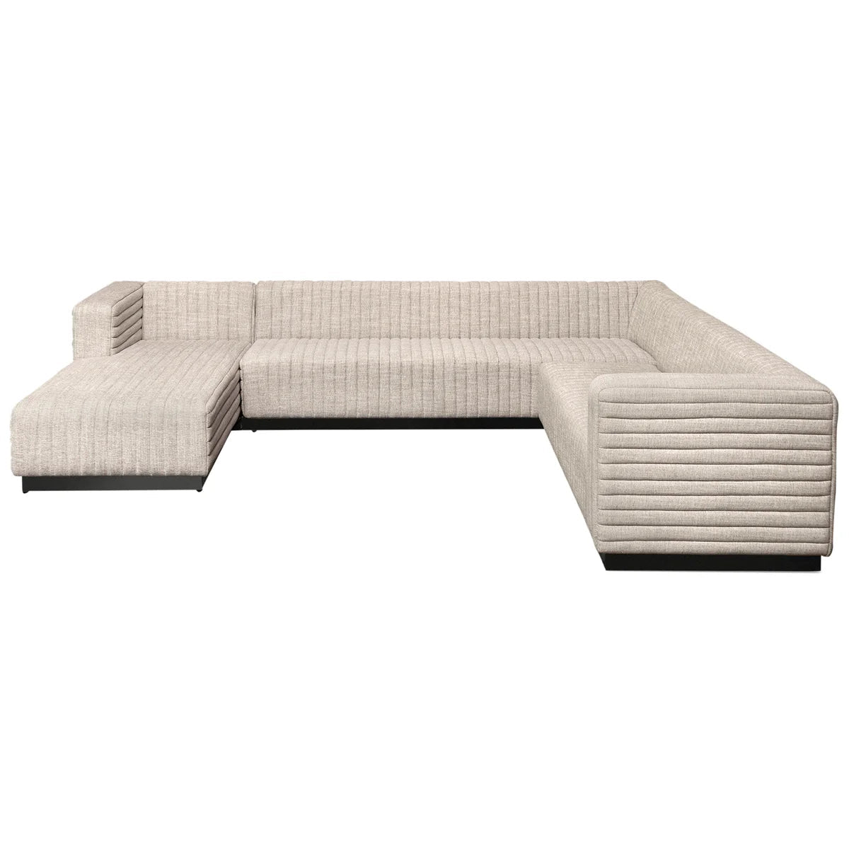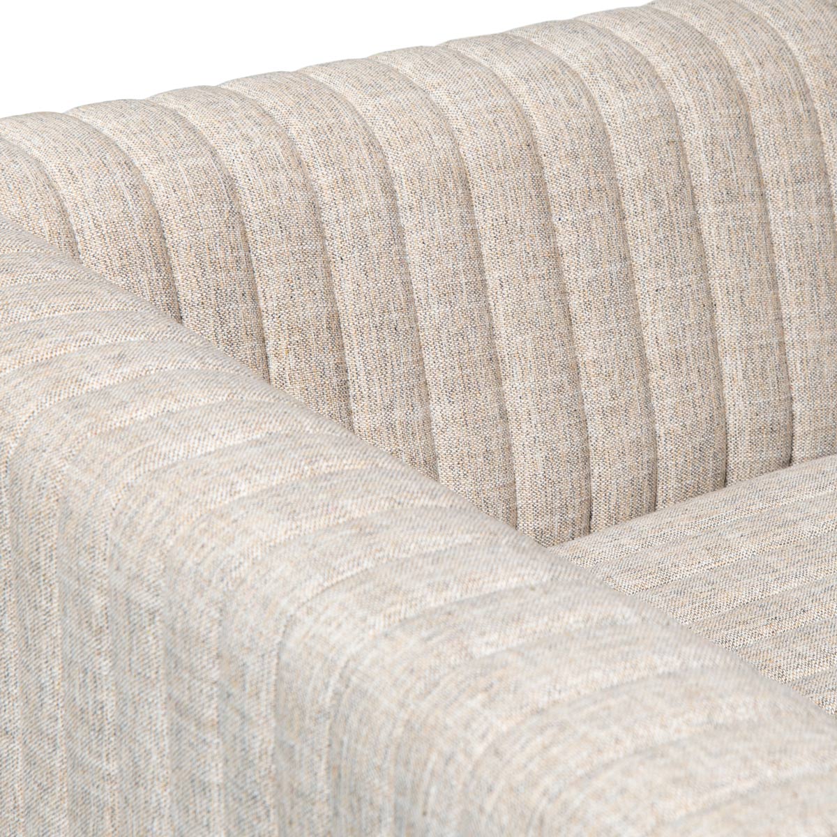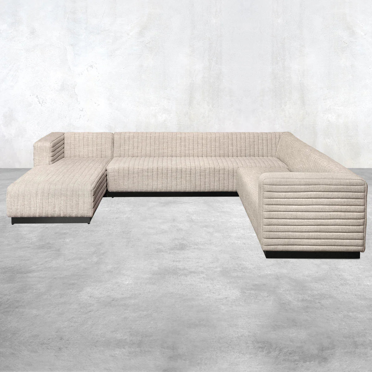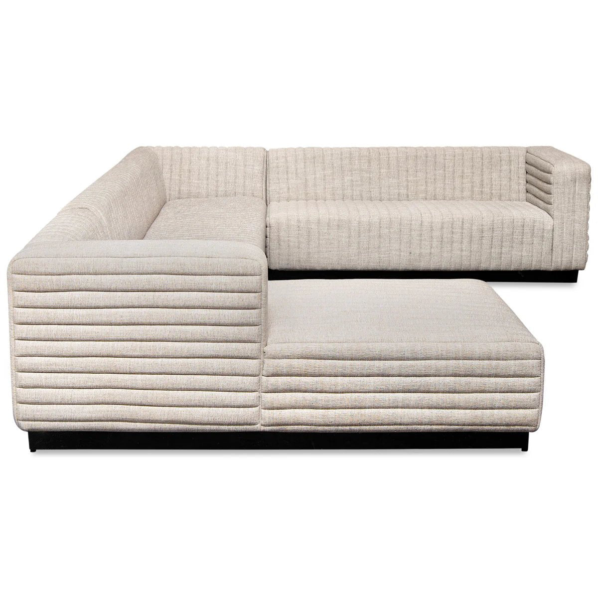 The sectional’s structured form is enhanced by subtle channel detailing that adds texture and visual interest without overwhelming the design. Upholstered in a beautifully textured butterscotch linen fabric, the Coquito Sectional brings warmth, richness, and softness to your space, making it easy to style across a range of interiors—from contemporary and transitional to relaxed modern homes.