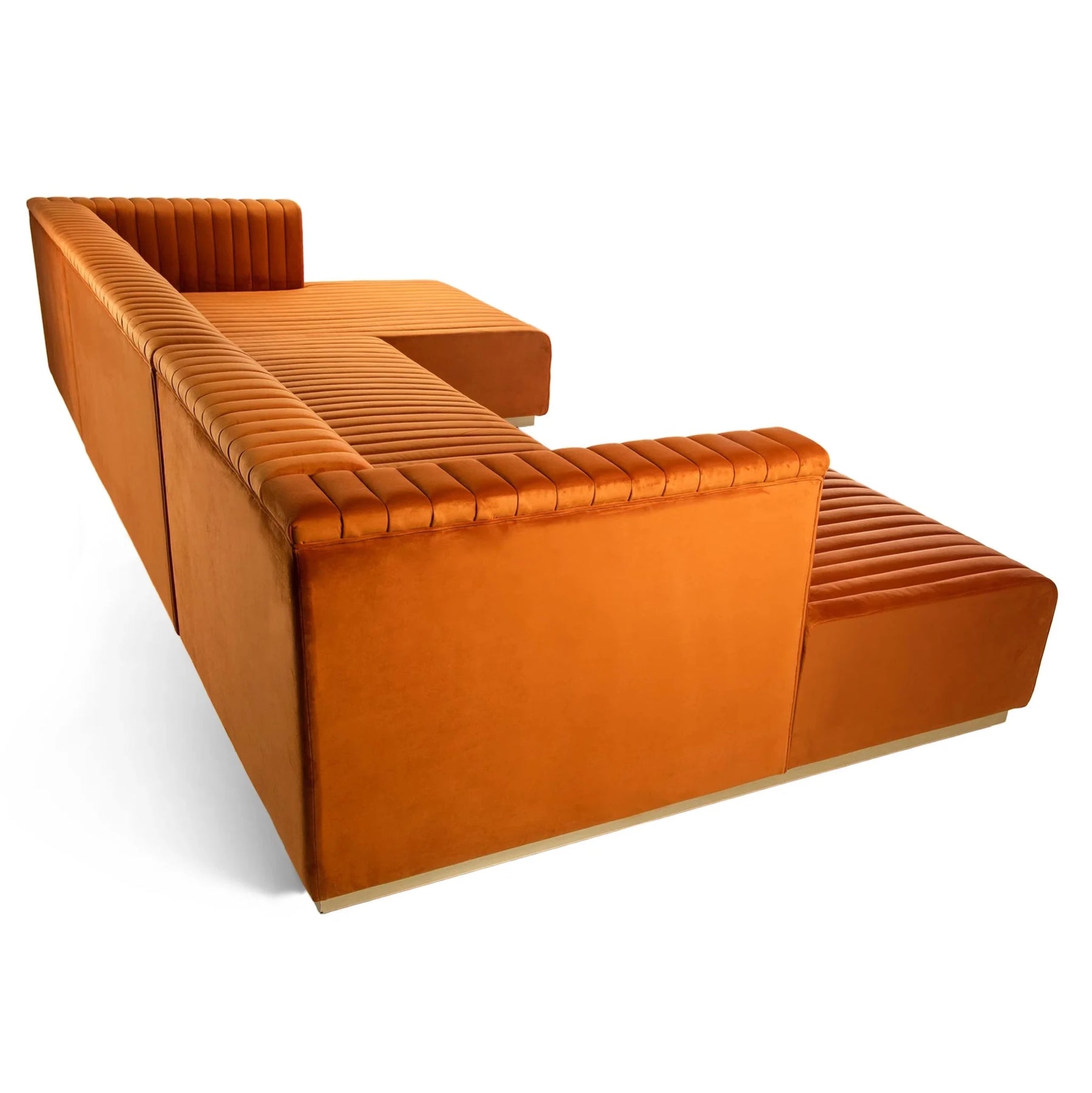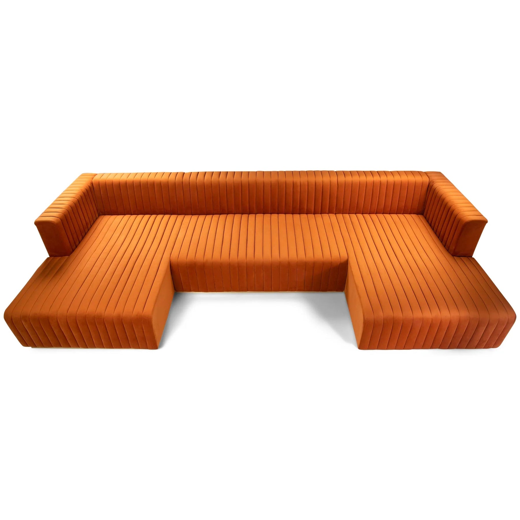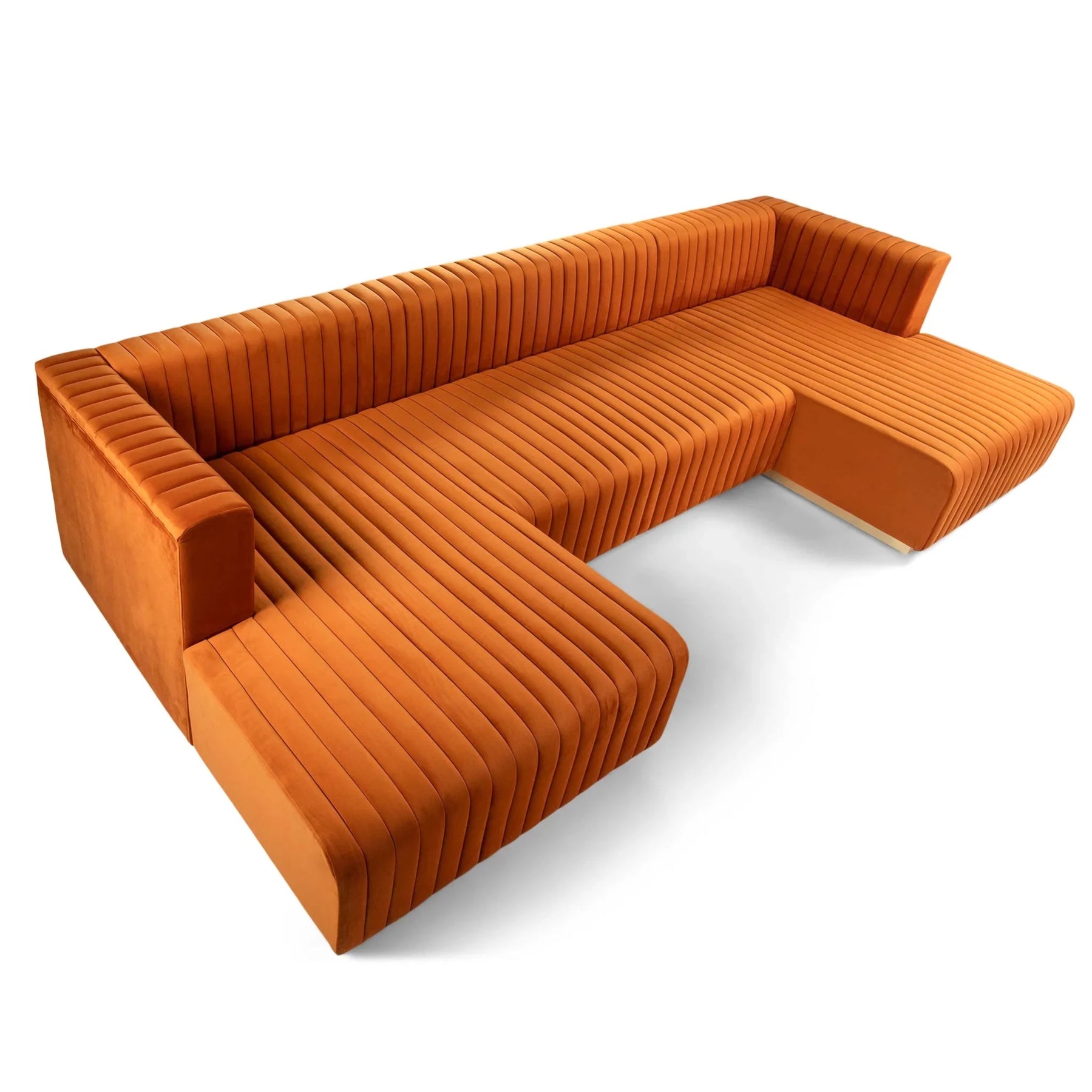 Each chaise offers extended depth for lounging, stretching out, or casual seating, while the center section anchors the design and completes the U-shaped configuration. The channel tufting adds texture and dimension across the seating and backrest, creating a tailored look that feels both luxurious and modern.