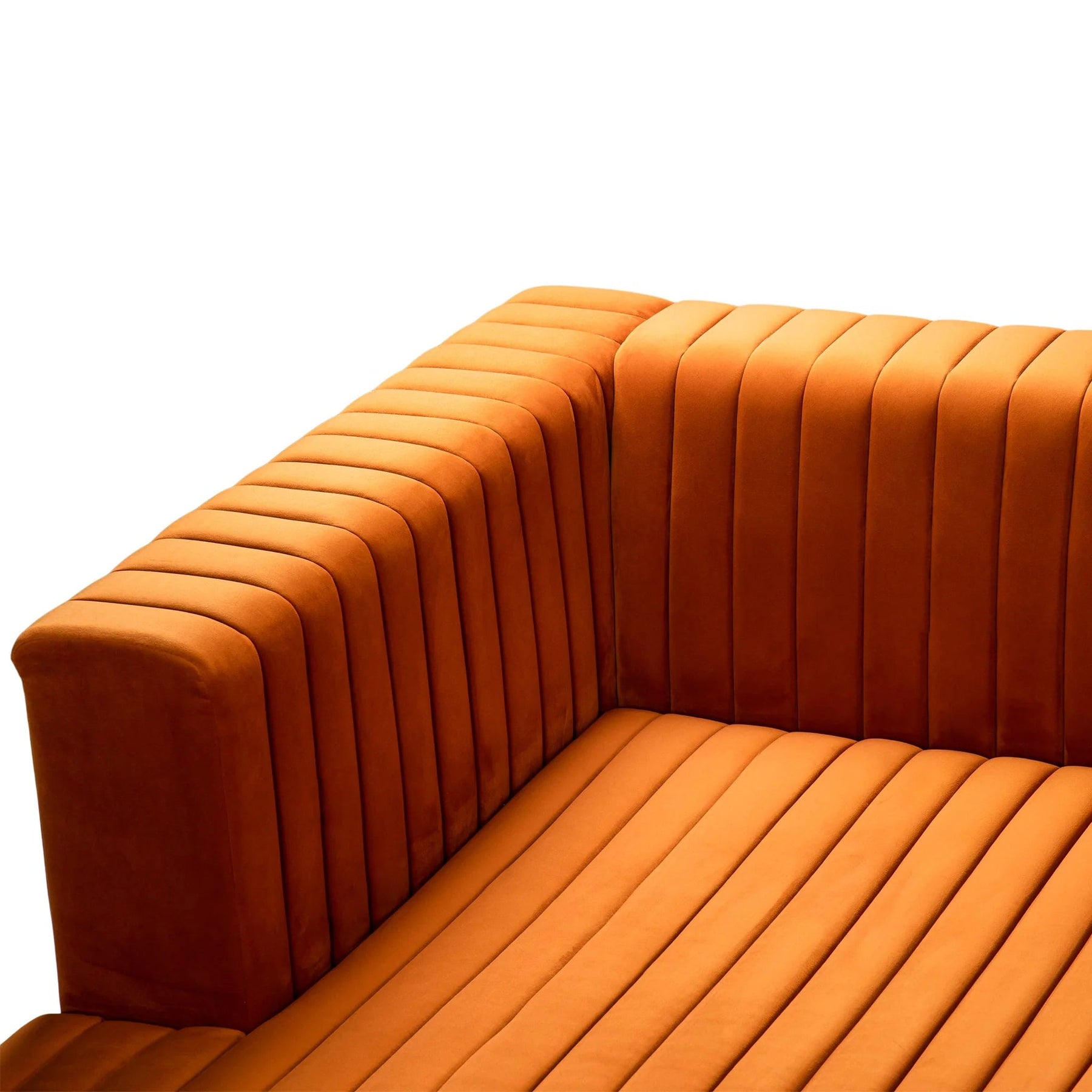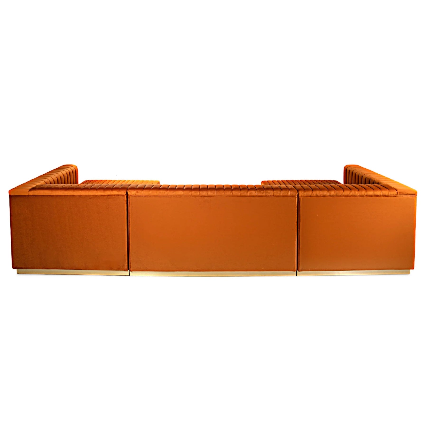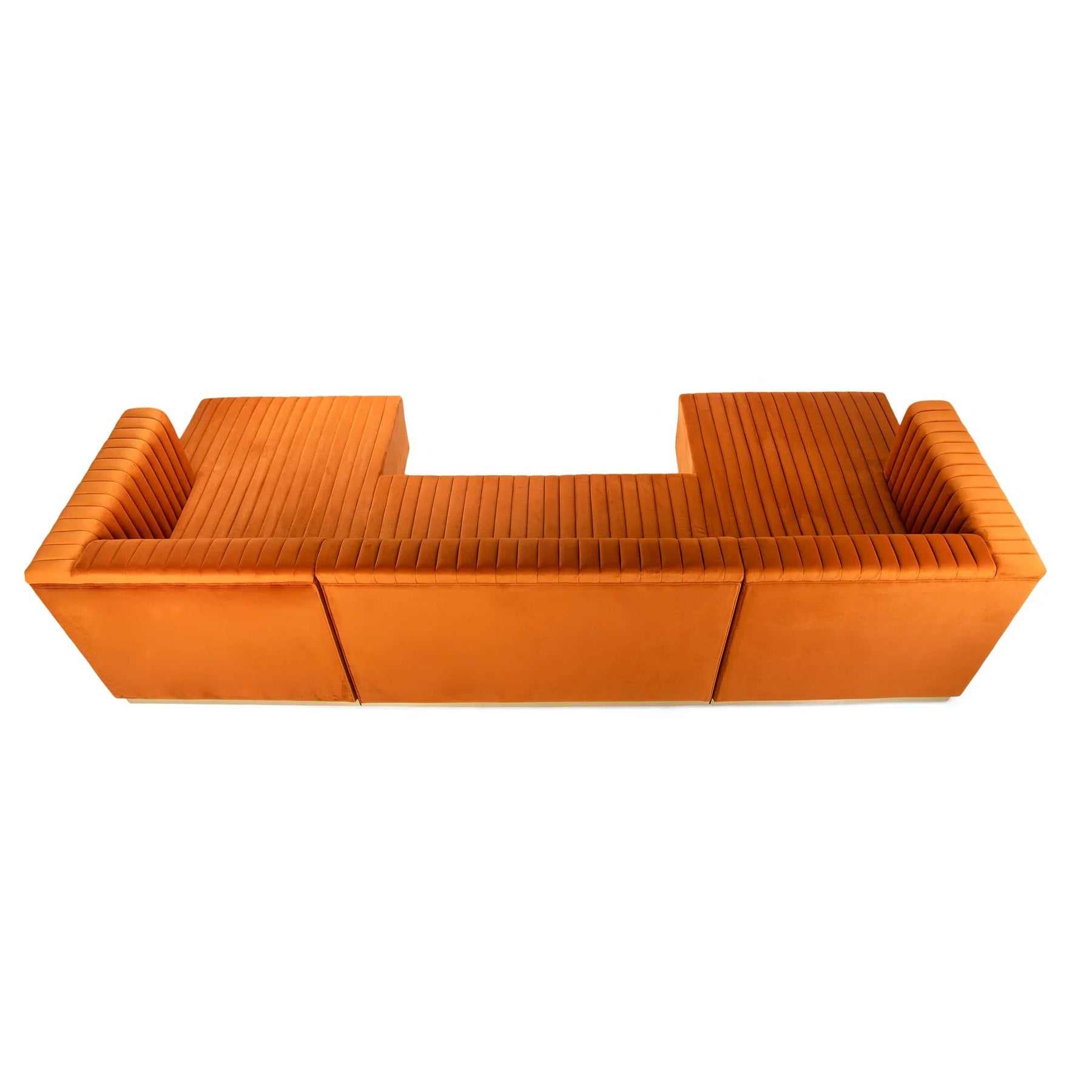 Each chaise offers extended depth for lounging, stretching out, or casual seating, while the center section anchors the design and completes the U-shaped configuration. The channel tufting adds texture and dimension across the seating and backrest, creating a tailored look that feels both luxurious and modern.