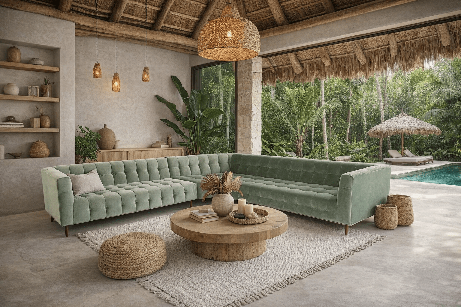 Bold proportions, refined comfort, and standout materiality come together in the Mexican Mule Sectional, a modern sectional sofa designed to elevate today’s contemporary living spaces. Upholstered in a rich mint velvet fabric, this statement piece brings a fresh, elevated look to modern interiors while offering a soft, luxurious seating experience. Perfect for large living rooms, open-concept homes, and stylish lofts, the Mexican Mule Sectional is crafted for those who appreciate modern furniture that balances visual impact with everyday comfort.